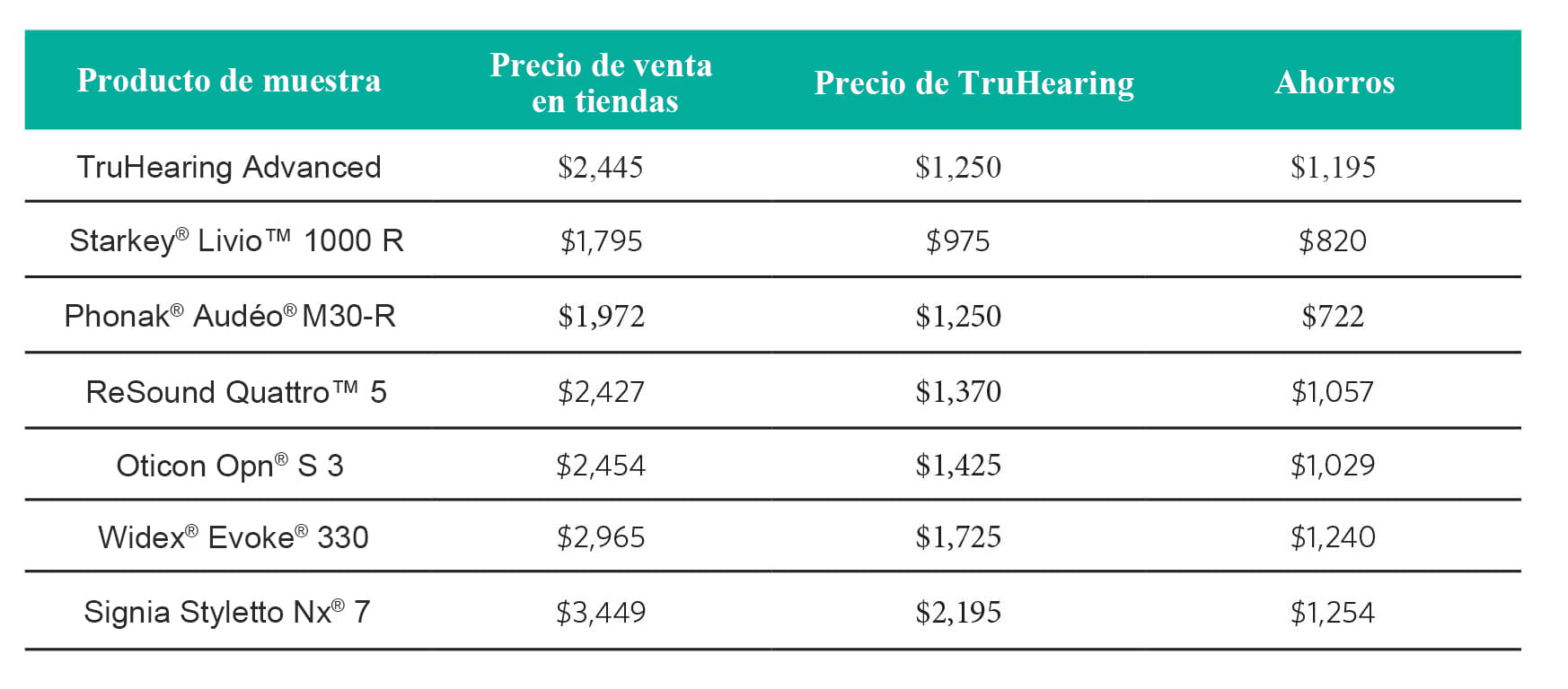 Los precios y productos están sujetos a cambios. Para obtener más información, visite truhearing.com.